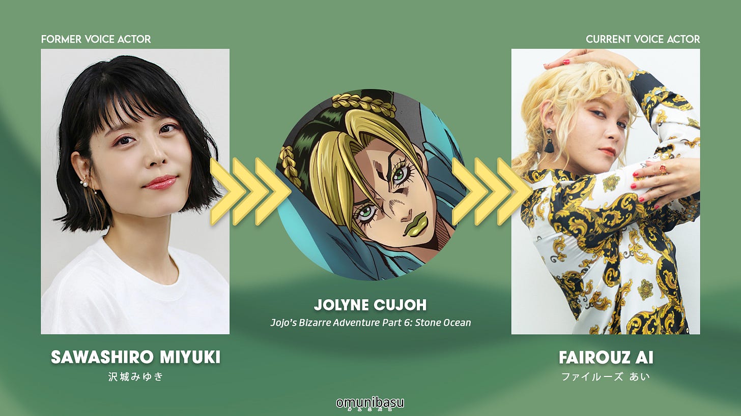Fast forward to 2021, the anime adaptation for Stone Ocean was finally announced and fans were excited to see another Jojo anime in production. And one of the biggest changes/announcements to this installment was with Jolyne herself, as it was revealed that she would now be voiced by up-and-coming seiyuu Fairouz Ai. From what I've seen, there isn't a clear cut explanation on why Jolyne's voice actress was changed (Sawashiro could've just been too busy to take on this role, who knows) but in my opinion, this was a good move. As much as I love Sawashiro Miyuki and her incredible performances, giving this kind of opportunity to voice the main character in one of the most popular Japanese franchises to a newer, very promising and already likable seiyuu in Fairouz Ai... I think this was a great example of the industry giving talented newcomer voice actors a chance to shine.